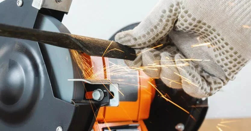 Möchten Sie Ihre Rasenmäherklinge schärfen, benötigen Sie ein paar Werkzeuge. Um ein optimales Ergebnis zu erzielen, ist es wichtig, die Klingen während der Arbeit zu fixieren. So vermeiden Sie Verletzungen und können gezielter wirken. Hierfür ist ein Schraubstock ideal, um den Sie sich herumbewegen können. Um den Schliff vorzunehmen, bieten sich zwei Varianten an: von Hand mit verschiedenen Feilen oder mit einer Schleifmaschine. Weiterhin schadet es nicht, einen Abziehstein zu besitzen und eventuell einen Winkelschleifer.