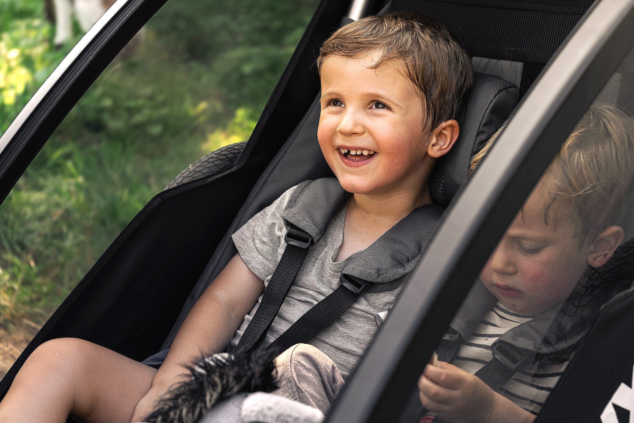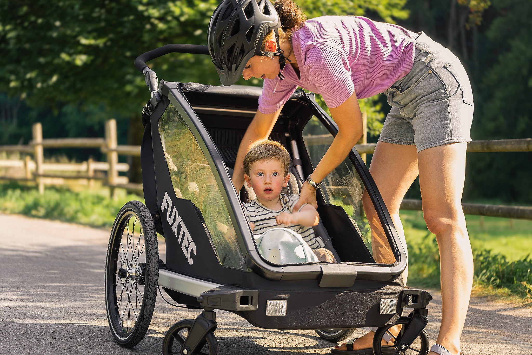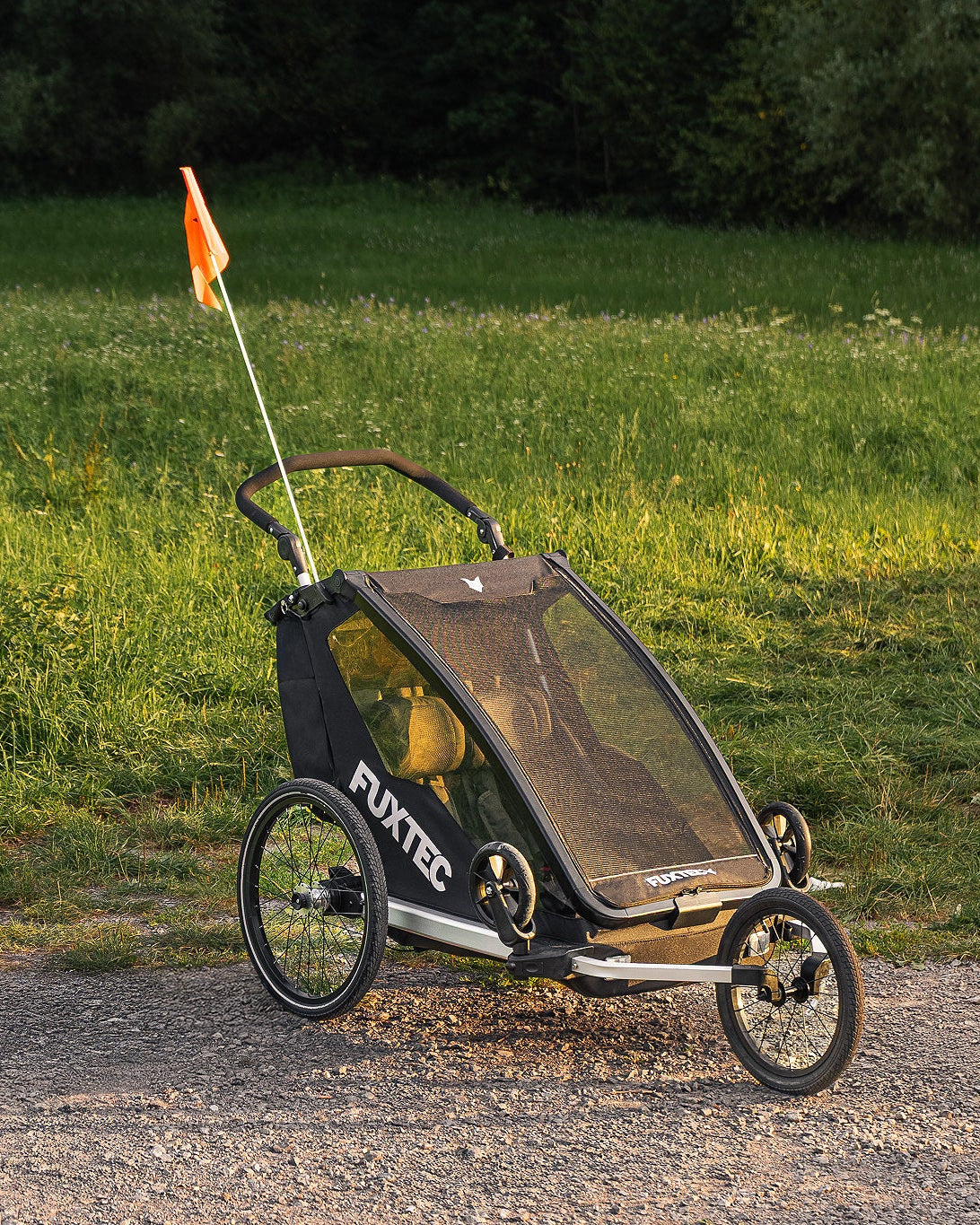 Bezpečnost a pohodlí jsou při výběru vozíku za kolo klíčové. Naše dětské vozíky FUXTEC jsou vybaveny stabilní rámovou konstrukcí, odolnými a povětrnostním vlivům vzdornými materiály a spolehlivými 5bodovými bezpečnostními pásy pro dvě děti. Reflektory zajišťují dobrou viditelnost i při jízdě za zhoršených světelných podmínek, takže se můžete na vozík spolehnout v každé situaci.