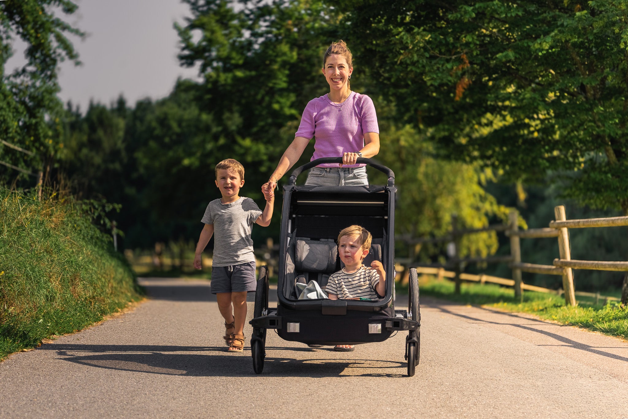 Díky multifunkční konstrukci můžete vozík snadno přeměnit z klasického vozíku za kolo na kočárek pro sportovní účely. To Vám umožní kombinovat každodenní pohyb s časem stráveným s dětmi. Výhodou je, že dítě má během celé aktivity pohodlí a bezpečí, zatímco Vy se můžete věnovat své kondici.
