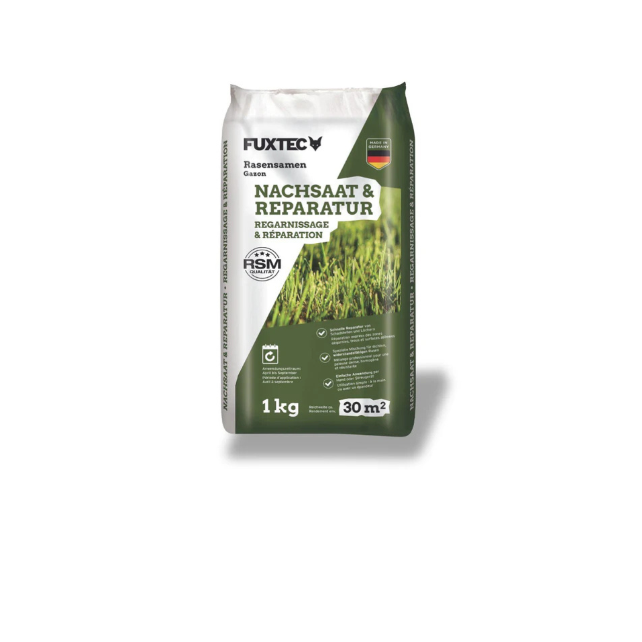 Für eine dichte und widerstandsfähige Grasnarbe empfehlen wir hochwertige 👉 Rasensamen von FUXTEC, die speziell für Nachsaat und Regeneration entwickelt wurden.