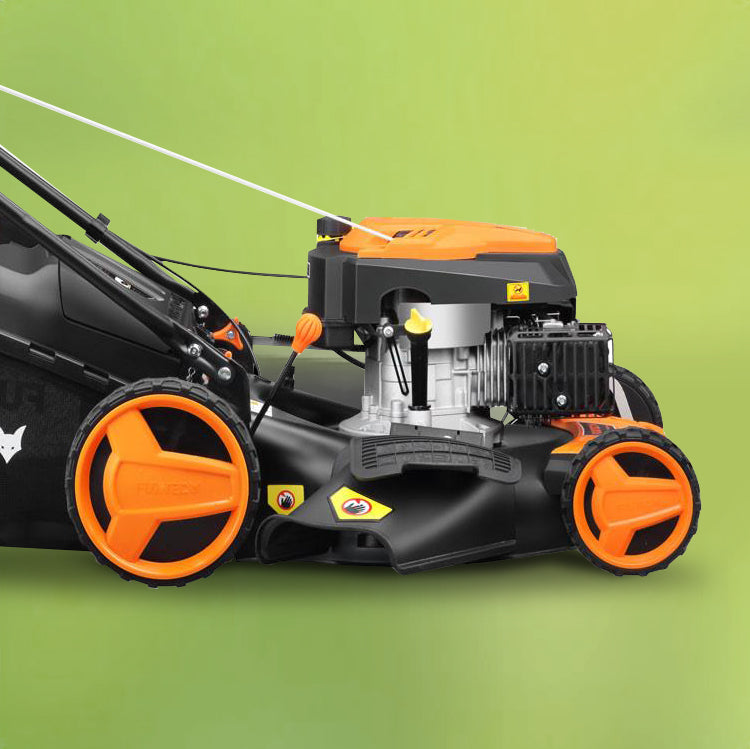 Die Motorleistung der Benzin-Rasenmäher liegt im Durchschnitt zwischen 3 und 4 Kilowatt und dadurch werden die Mäher auch mit einem höher gewachsenen Rasen fertig. Benzin-Rasenmäher sind in der Regel größer als die elektrischen Modelle und haben ein höheres Gewicht. Modernere Mäher besitzen angetriebene Räder und müssen nicht mehr aus eigener Kraft bewegt werden. Durch das fast selbstständige Fahren unseres FX-RM5196PRO, wird die Arbeit im Garten deutlich erleichtert. Dafür sind die Benzin-Rasenmäher auf jeden Fall lauter. Zudem benötigt ein Benziner im Vergleich zu einem Elektro-Rasenmäher mehr Wartung. So sollte Dir beim Kauf eines Benzinrasenmähers bewusst sein, mindestens einmal im Jahr einen Ölwechsel vorzunehmen, um einen Leistungsabfall vom Motor zu verhindern. Außerdem muss bei einem Benzin-Mäher stets für Treibstoff gesorgt werden.