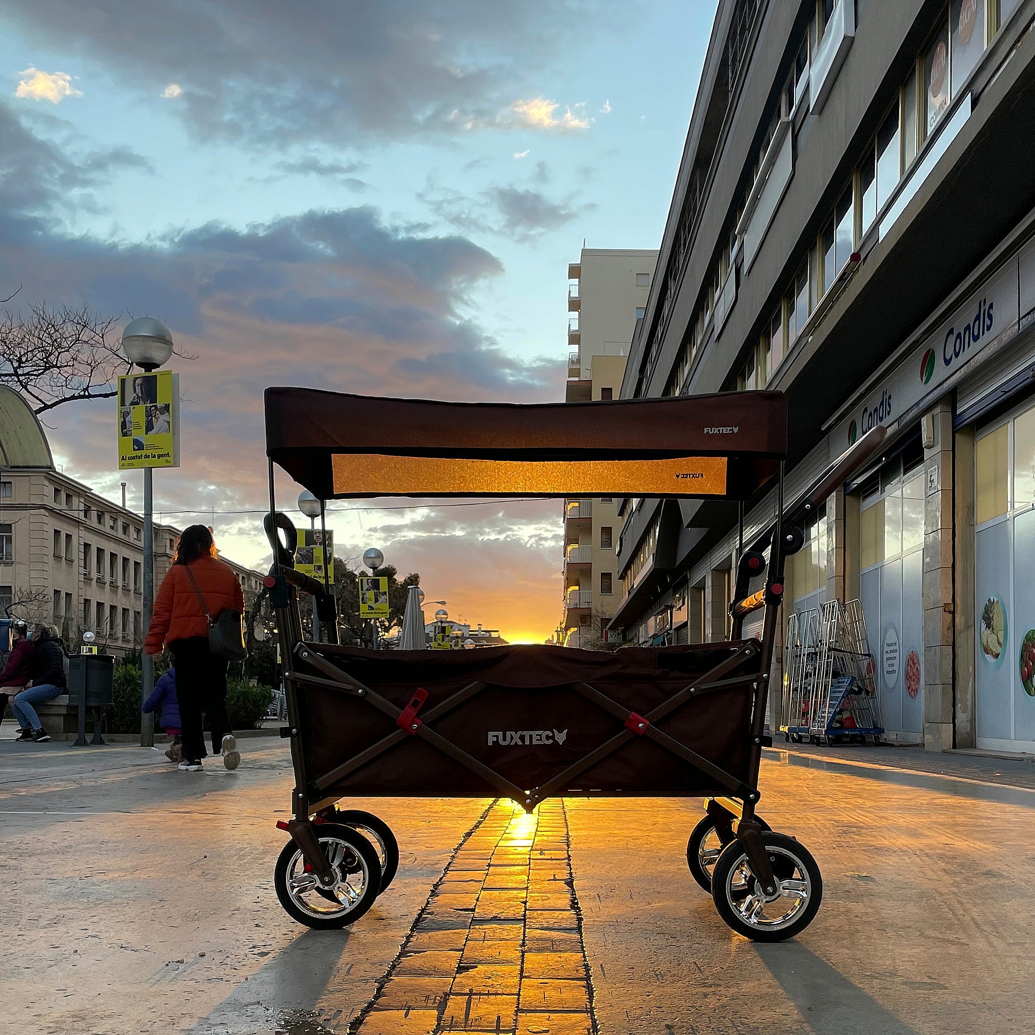 Der Bollerwagen FX-CT700 bietet mit UV-geschütztem Sonnendach und zusätzlichem Schiebegriff komfortablen Schutz und einfache Mobilität – ideal für alle, die auch unterwegs clever transportieren möchten.