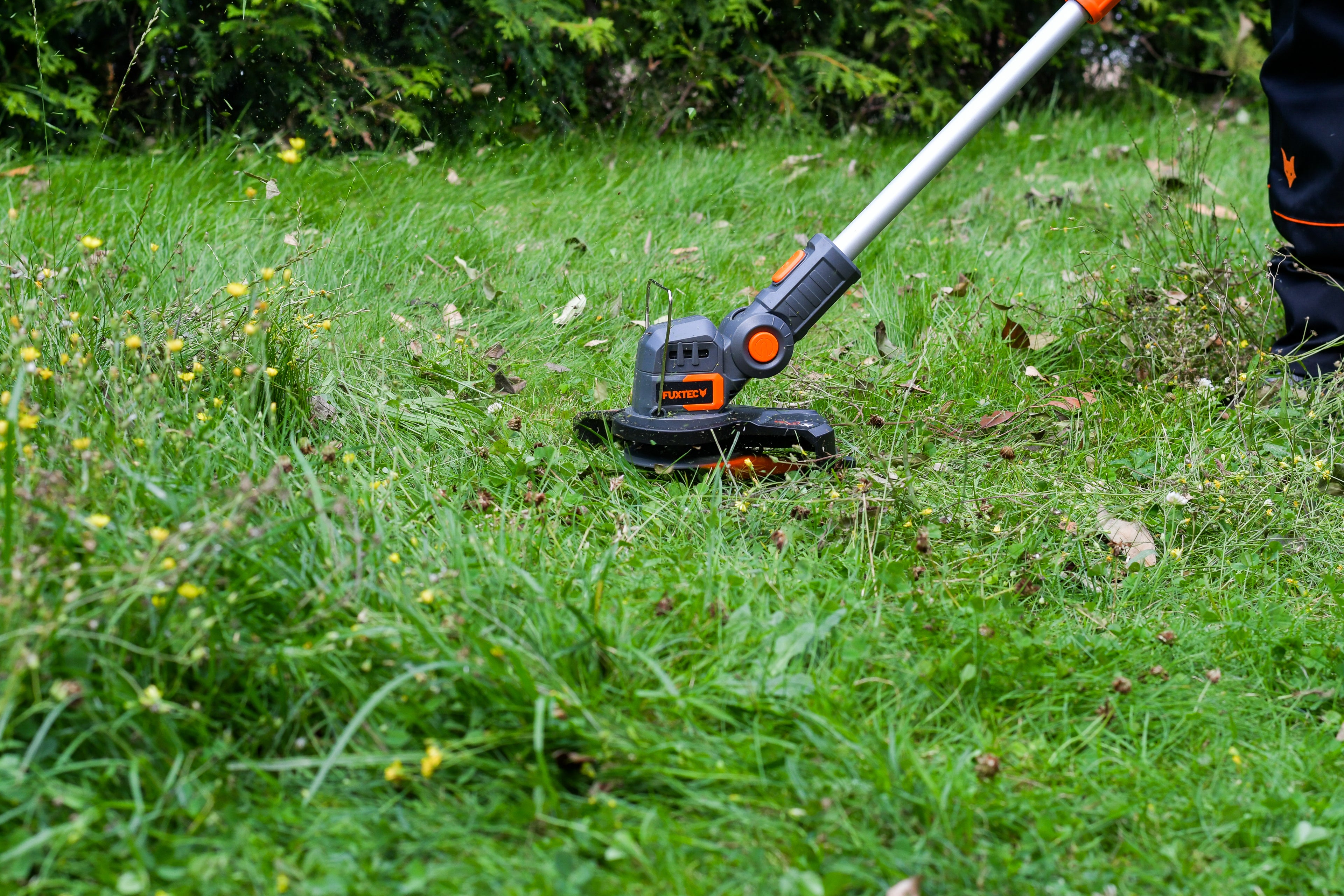 Akumulátorový vyžínač FUXTEC 20V FX-E1RT20 má teleskopické predĺženie a otočnú hlavu pre presné okraje trávnika. Bezdrôtové kosenie vďaka výkonnému lítium-iónovému akumulátoru – vždy pripravený na použitie stlačením tlačidla.