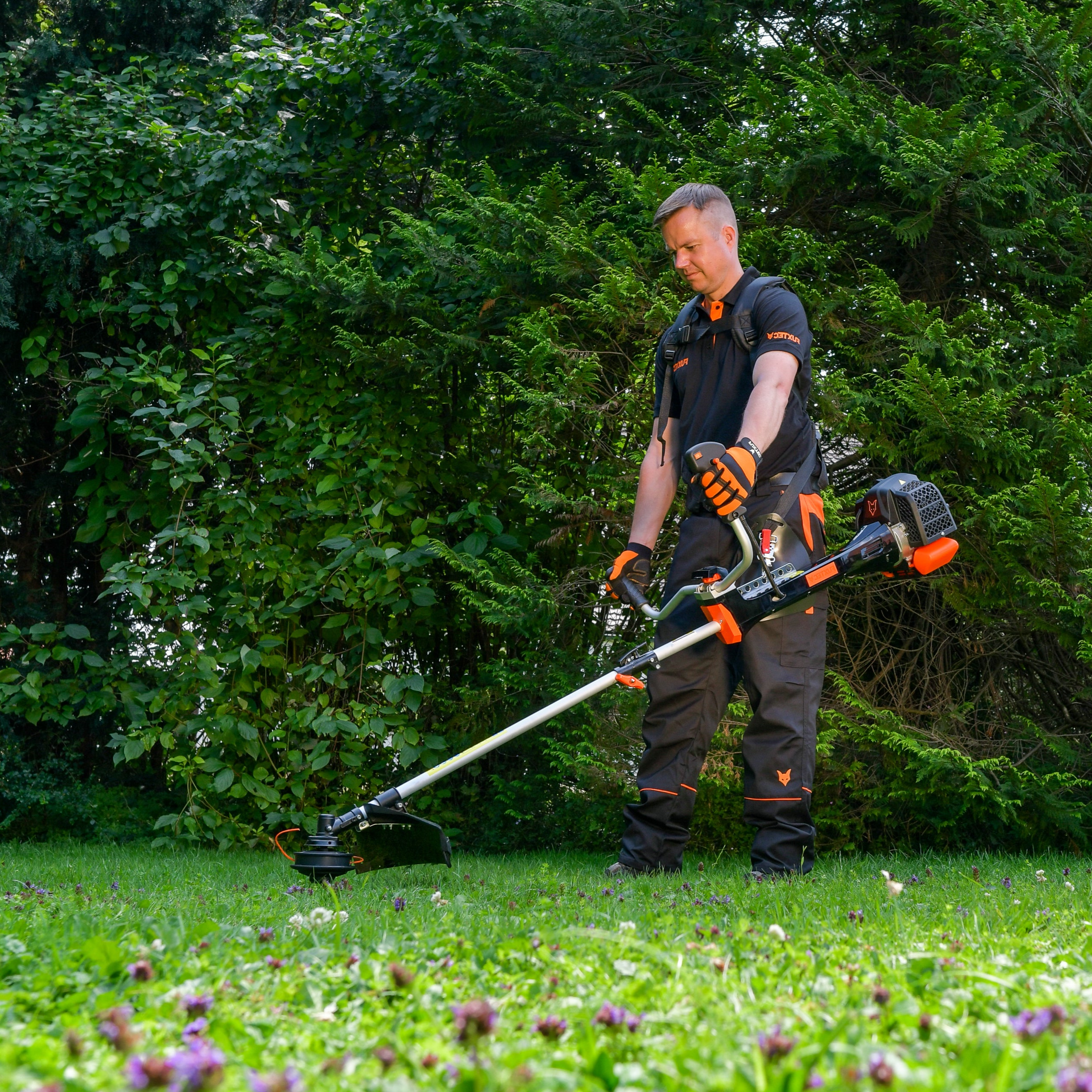 Die Benzin Profi-Motorsense FX-PS152 sorgt dank Easy-Start und bequemen Tragegurt und Zweihandgriff für angenehme Sensenarbeiten.