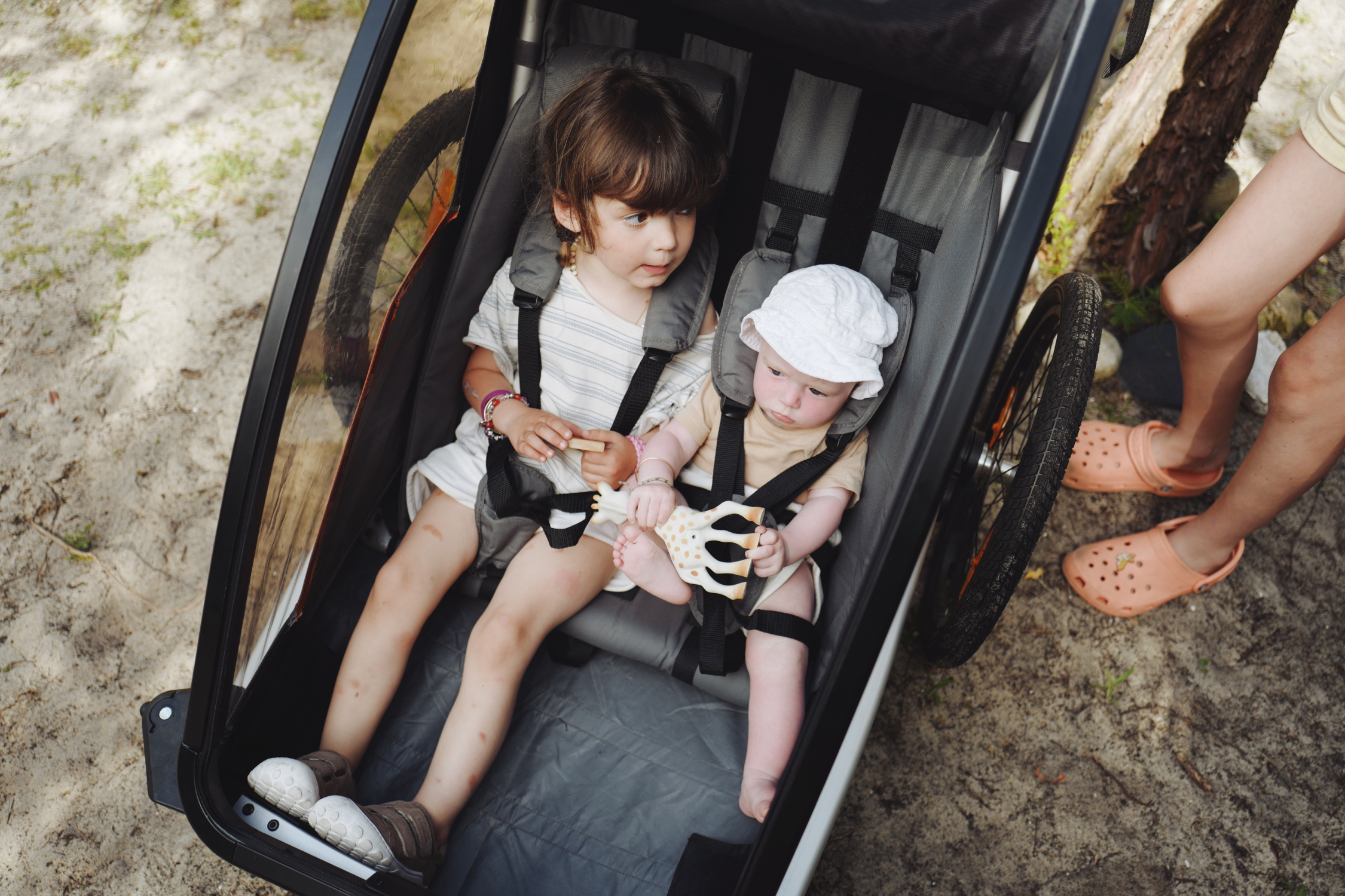 Sportovní príves na kolo/jogger až pro dve deti, který lze behem chvilky prestavet i na kocárek.